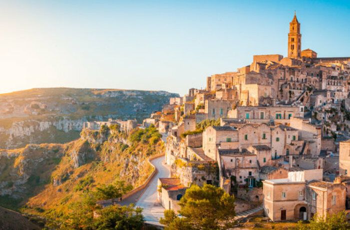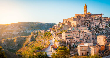 2019 Kulturhauptstadt Europas mit weltberühmten Felsenkirchen und „Sassi“ – altertümliche, im Felsen gegrabene Wohnsiedlungen an den Felsenhängen einer karstigen Hochebene. Die Stadt wird gerne als „zweites Bethlehem“ bezeichnet. Mit den engen Gassen hat man das Gefühl in einer Krippe herzumzulaufen.