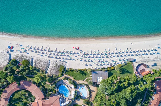 Der italienische Ferienclub liegt an einem der schönsten Strände der Insel – an der Costa Rei. Das Hinterland ist unberührt und wild. Die gepflegte Anlage ist weitläufig und terrassenförmig gebaut, je nach Lage des Zimmers sind es maximal 400 Meter bis zum Strand. Die Animation, das Showprogramm am Abend und das Personal sorgen für unbeschwertes italienisches Urlaubsfeeling.