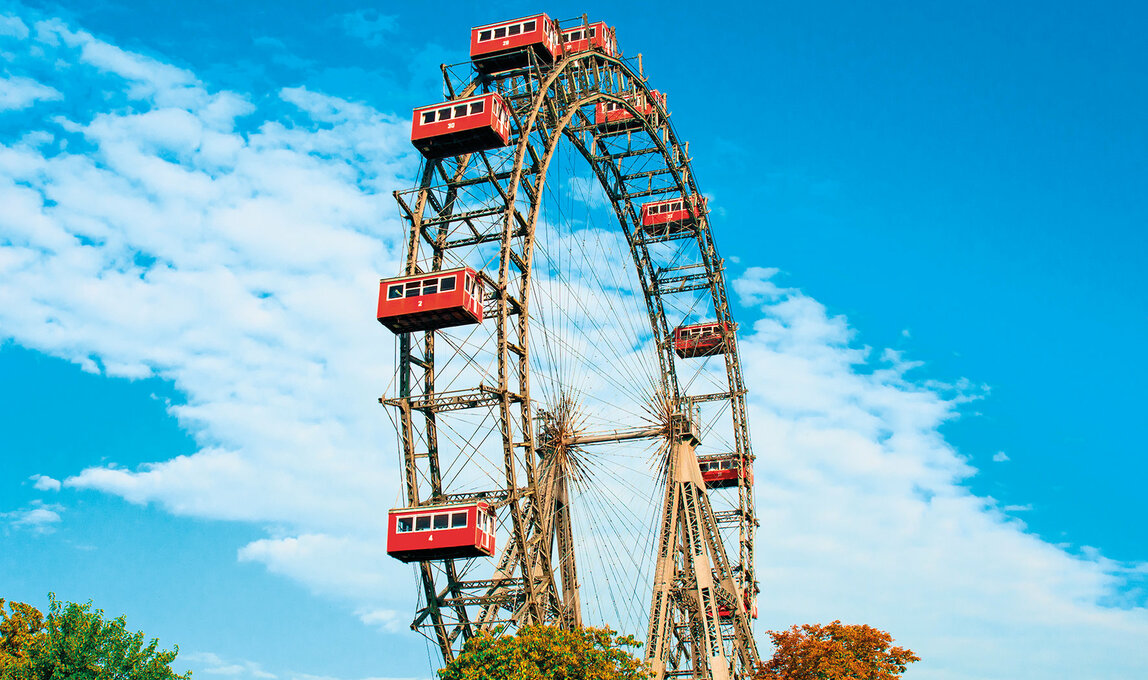 Leihen Sie im Vergnügungspark "Prater" ein Rad oder eine Radrikscha (bei der Hochschaubahn) und beginnen Sie auf der 4,5 Kilometer langen Prater-Hauptallee Ihre Erkundungstour.