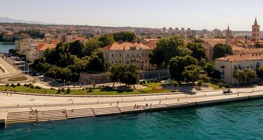 Als ehemalige Hauptstadt Dalmatiens gilt die Perle für Einheimische als „schönste Stadt der Welt“. Auf einer Halbinsel gelegen wird sie von zwei „Rivas“ gesäumt. An der zum Festland zugewandten Seite legen Schiffe an, auf der anderen – den Inseln zugewandte Seite – befindet sich die „neue“ Riva. Ein Platz zum Flanieren und Staunen. Die einzigartige Meeresorgel – ein architektonisches Meisterwerk - gestaltet vom Stararchitekten Nikola Bašić, erzeugt wunderschöne Melodien durch die Kraft der Meereswellen. Ein künstlerisches Musikobjekt, das unter die Haut geht. Ebenfalls eine geniale Konstruktion des Architekten ist „Der Gruss an die Sonne“ ein Denkmal aus 300 gläsernen Solarzellen. Aufgeladen von der Sonne erzeugt die Installation nach Sonnenuntergang eine spektakuläre Lichtshow am Meer. Zadar besitzt tatsächlich eine der schönsten Altstädte Dalmatiens. Im Herzen der Stadt pulsiert das Leben auf der „Kalelarga“, die autofreie Hauptstrasse mit charmanten Cafés und bunten Boutiquen.