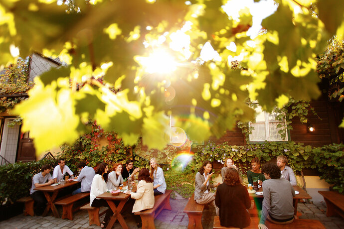 Zahlreiche Lieder wurden ihm gewidmet, für viele Filme diente er als Kulisse. Doch vor allem bietet der Heurige den Wienern und ihren Gästen in der sprichwörtlich gemütlichen Atmosphäre Unterhaltung, feine Weine aus Wien und die dazu passende kulinarische Begleitung. Ein Platz zum Wohlfühlen, bei dem jeder herzlich willkommen ist. Den echten Wiener Heurigen, in dem ausschließlich Wein aus eigenem Anbau ausgeschenkt wird, erkennt man am Föhrenbuschen und an einer Tafel mit dem Wort „Ausg’steckt“, das gleichzeitig anzeigt, wenn das Lokal geöffnet ist. Die Wiener Heurigenkultur zählt übrigens ebenso wie der Wiener Würstelstand und die traditionelle Wiener Kaffeehauskultur zum immateriellen Kulturerbe der UNESCO. Die Vielfalt der Wiener Heurigen reicht vom traditionellen Heurigen bis zur Buschenschank direkt im Weingarten.