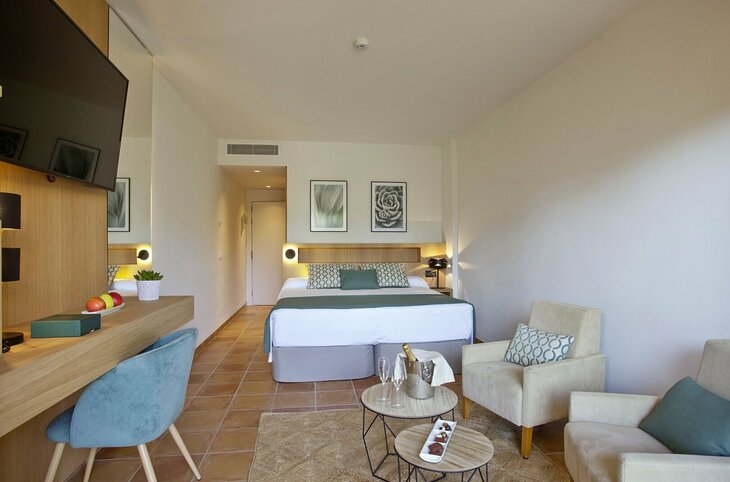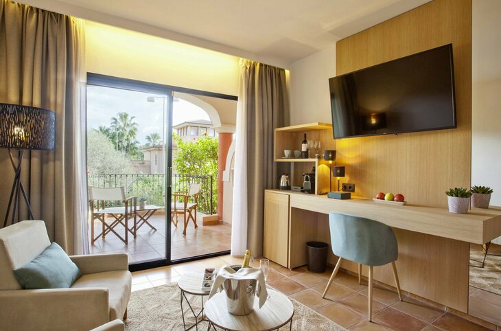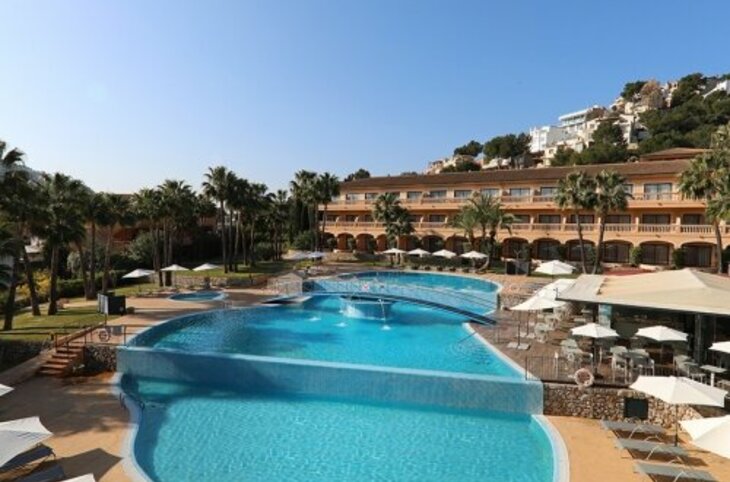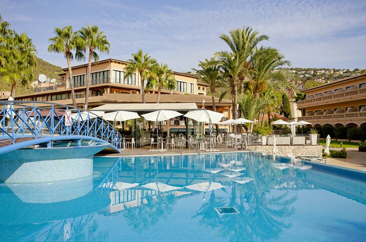Die im mallorquinischen Stil erbaute Anlage erstreckt sich über ca. 18.000 m² und besteht aus mehreren eleganten Wohngebäuden, die harmonisch in die üppige Gartenlandschaft eingebettet sind. Der grosse, in drei Ebenen angelegte Aussenpool mit kleinen Wasserfällen ist ein besonderes Highlight. Insgesamt bietet das Hotel 137 Zimmer, mehrere Pools, Spa-Einrichtungen, Restaurants, Bars sowie Konferenzräume. Die Atmosphäre ist ruhig, gepflegt und ideal für entspannte Urlaubstage in einem 4,5-Sterne-Haus.