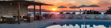 Restaurant Tramonti: in der Halbpension inklusive. Auf der malerischen Terrasse am Rand des Pools befindet sich das elegante Restaurant, wo Sie Ihr Abendessen bei Kerzenlicht einnehmen können. Lassen Sie sich vom atemberaubenden Sonnenuntergang in romantischer Atmosphäre und dem unvergleichlichen Blick auf den Archipel La Maddalena verzaubern. Der Küchenchef wird Sie mit den besten Gerichten der mediterranen Tradition nach den Prinzipien der modernen Küche verwöhnen: einfach erlesen und niemals banal!