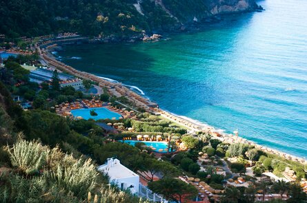 Der grösste und schönste Thermalpark Ischias lädt zum Wohlfühlen ein: Mehr als 20 Becken in unterschiedlichen Temperaturen, umgeben von subtropischen Gärten und mit herrlichem Blick auf das Meer, bieten pure Erholung. Heisse Thermalquellen, Kneipp-Parcours, ein natürlicher Sandstrand sowie moderne Wellness- und Kurangebote machen die Poseidongärten zu einem wahren Paradies für Körper und Seele. Geniessen Sie einen entspannten Nachmittag zwischen duftenden Pinien, mediterranen Pflanzen und wohltuendem Thermalwasser – ein Erlebnis, das Ischia so einzigartig macht.