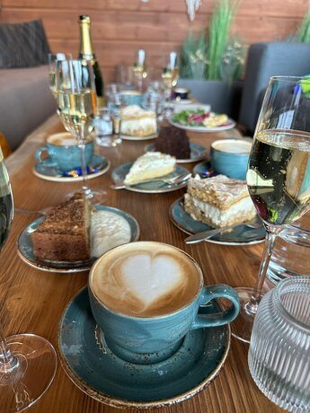 Immer wieder habe ich aus Erzählungen von den guten Kuchen/Torten und Kaffeesorten vom Hill-Top-Hotel gehört. Natürlich mussten sich auch noch andere davon überzeugen und immer wieder konnte der ein oder andere auf dem Winterwanderweg angetroffen werden. Ich muss sagen, die Kuchen und Torten waren wirklich sagenhaft – und auch die weite Sicht auf die umliegende Winterlandschaft war die Wanderung wert. Das Abendessen im Hotel war auch sehr abwechslungsreich. Natürlich standen verschiedene Salate und Hauptspeisen auf dem Programm. Das Dessert wird so manchen in besonders positiver Erinnerung bleiben.