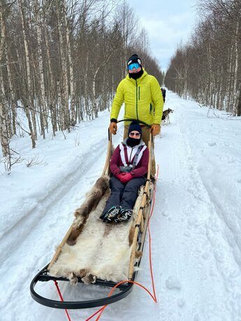 Unsere kleinen, persönlich betreuten Gruppen entdeckten die Region auf abwechslungsreiche Weise: rasante Husky-Schlittenfahrten, eine ruhige Schneeschuhwanderung durch den Nationalpark Iso Syöte und ein unvergesslicher Besuch auf der Rentierfarm von Mika und Satu gehörten zu den Highlights dieser Reise.